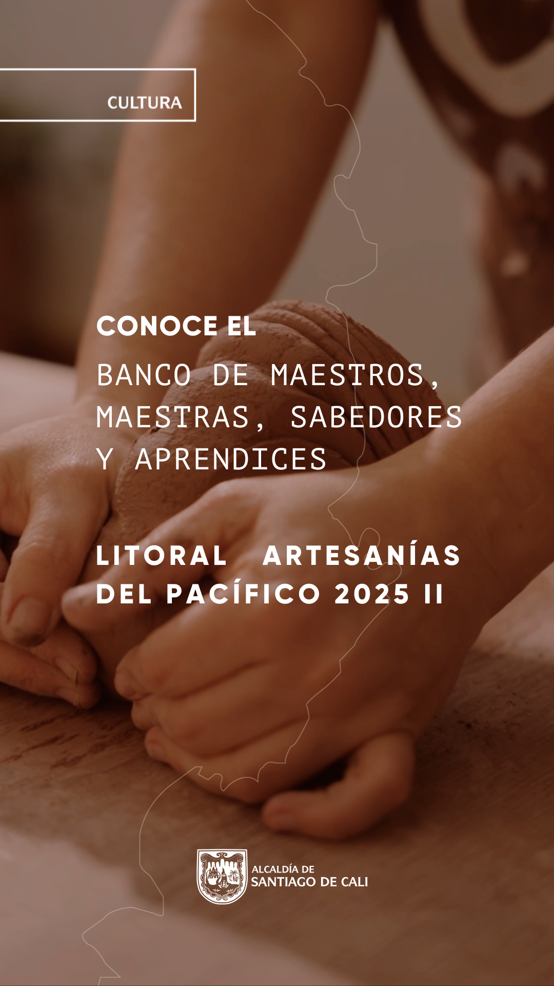 La Secretaría de Cultura de Santiago de Cali invita a maestros, sabedores y aprendices a inscribirse en el programa Litoral Artesanías del Pacífico para conformar el Banco de Artesanos. Este proceso tiene como propósito reconocer, registrar y seleccionar a quienes transmiten y preservan los oficios tradicionales como parte del patrimonio cultural inmaterial. Al hacer parte del banco, podrás acceder a procesos de formación, creación y proyección vinculados a la nueva colección Litoral, fortaleciendo así la continuidad y dignificación de los saberes artesanales.